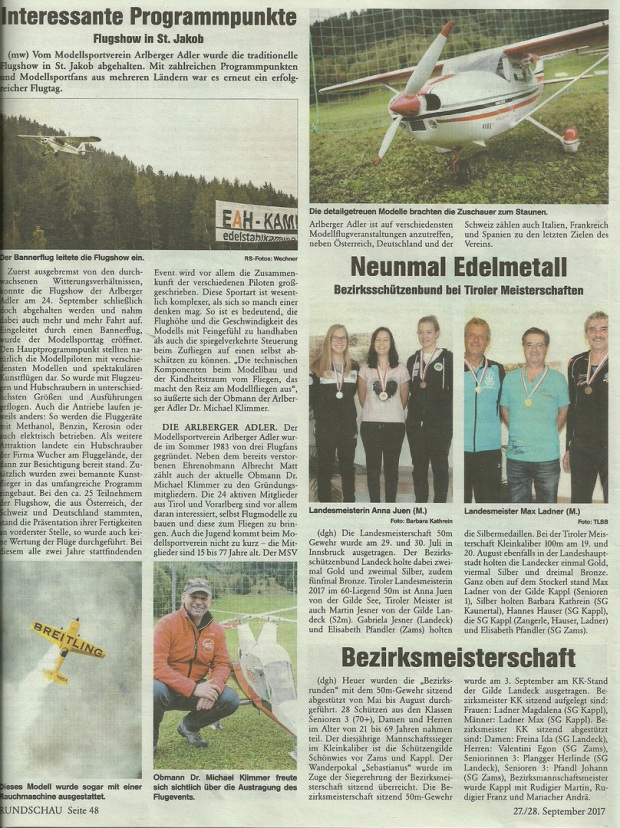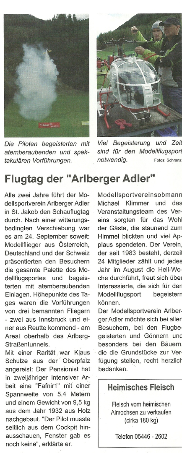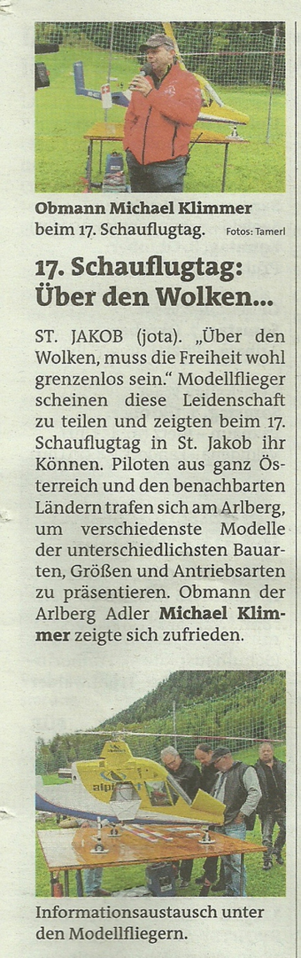 Nach zweijähriger Pause veranstalteten die Arlberger Adler am Sonntag, den 17. September 2017 auf dem Modellfluggelände in St. Jakob am Arlberg ihren 17. Schauflugtag.