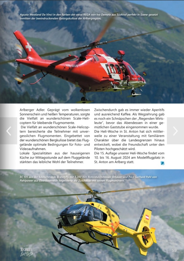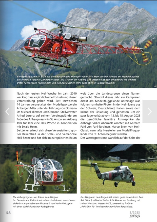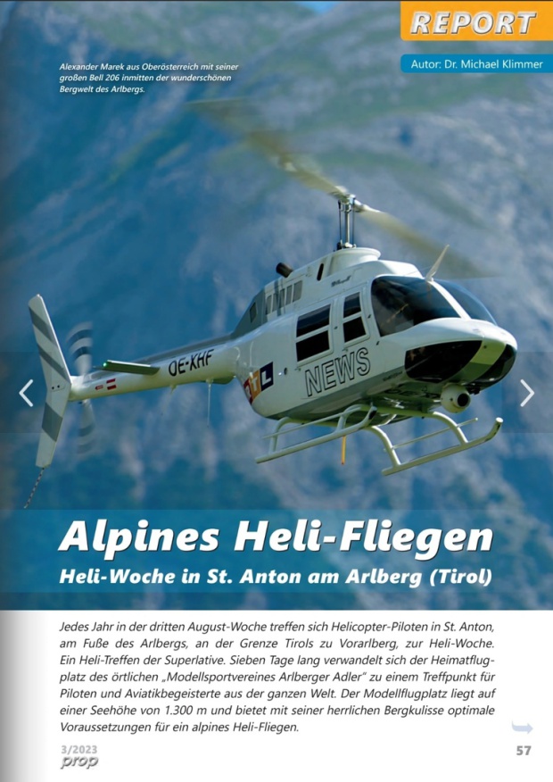 Nach der ersten Heli-Woche im Jahr 2010 war klar, daß es jährlich eine Fortsetzung dieser Veranstaltung geben wird. Seit inzwischen 14 Jahren veranstaltet der Modellsportverein Arlberger Adler unter der Führung von Obmann Dr. Michael Klimmer und Obmann-Stellvertreter Alfred Lorenz auf seinem Vereinsgelände am Fuße des Arlbergmassiv in St. Anton am Arlberg Jahr für Jahr eine Heli-Woche in Kooperation mit Ewald Heim. Seit jeher erfreut sich diese Veranstaltung großer Beliebtheit in der Scale- und Semi-Scale Heli-Szene und hat sich im europäischen Raum weit über die Landesgrenze einen Namen gemacht.